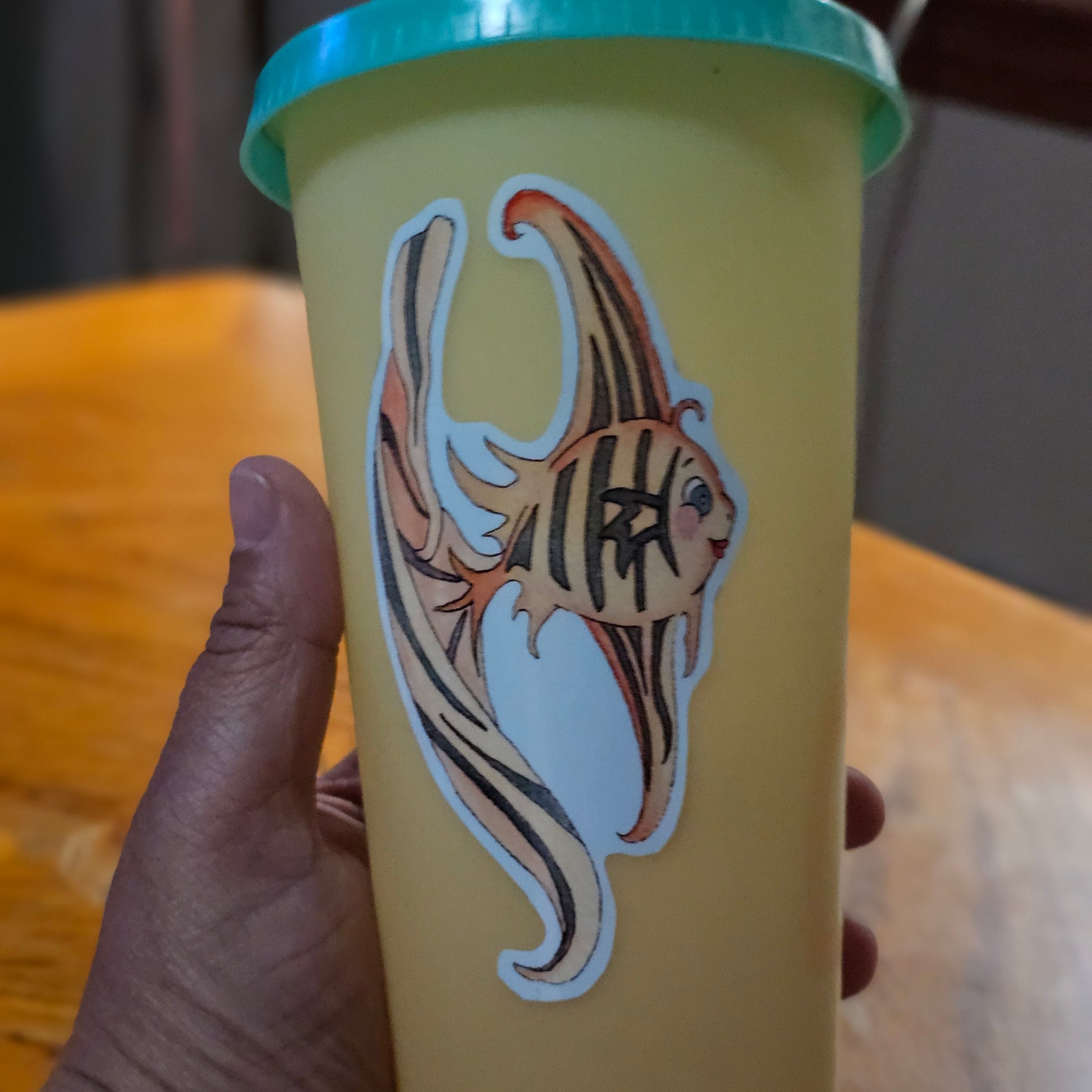 Such an angel!! Based on the beautiful angel fish, these Die cut stickers, are printed on durable, high opacity adhesive vinyl, topped with a clear laminate to protect it from fading and scratches and are hand cut to shape. Available in 2 sizes, so you can choose the right size for your object or project.