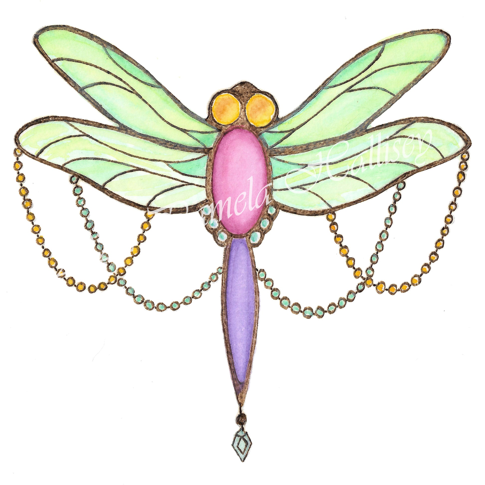 This bejeweled Dragonfly was created using my two favorite mediums, pyrography and watercolor!!  I used my pyrography tool to burn the outlines onto the paper and then  professional grade watercolor to allowing it to take on a stained glass, jeweled look.  Perfect to brighten up any room, these might look especially cute in a Nursery, Child's Room, or even a bathroom!