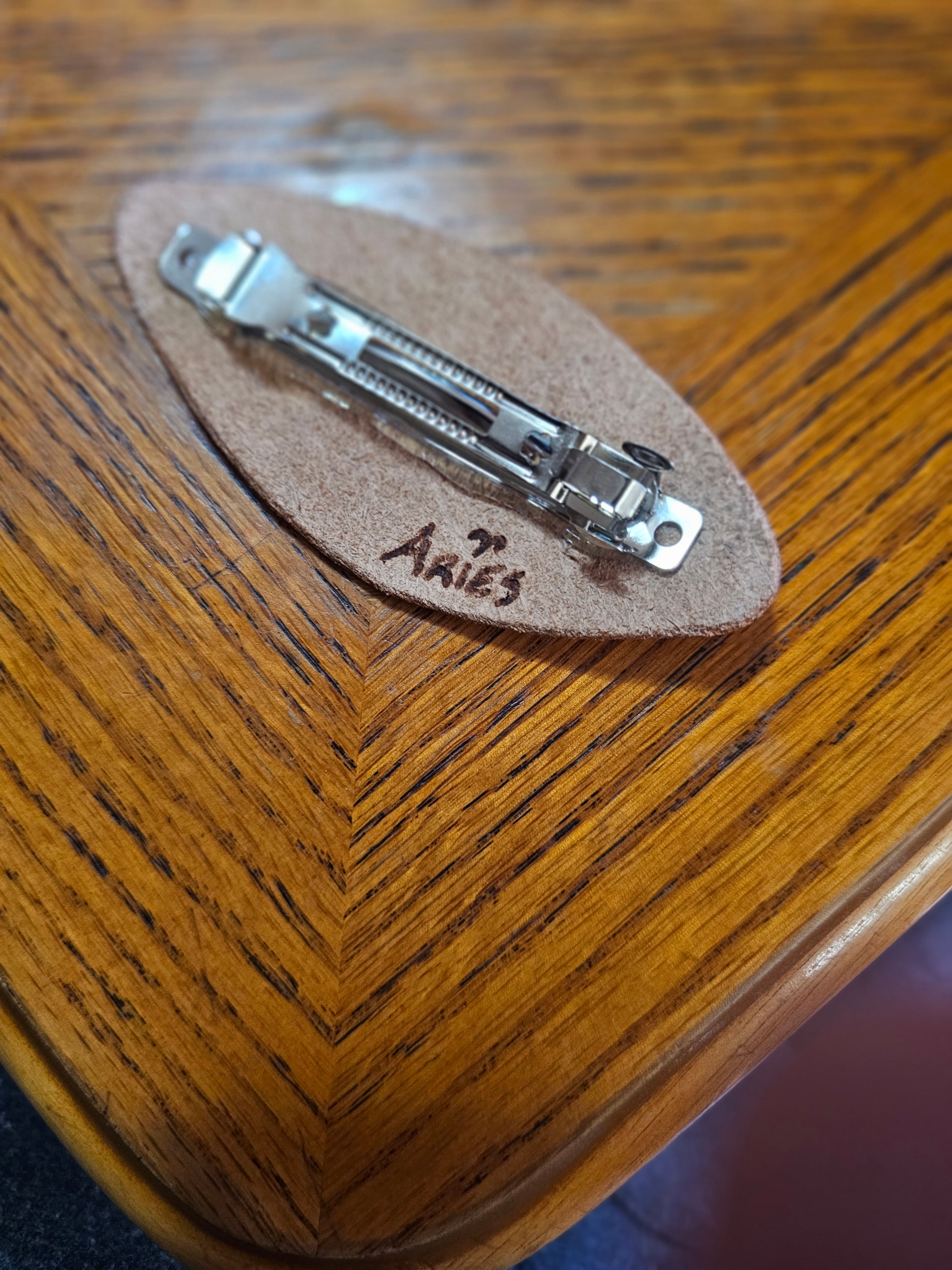 Barrette measures approx.. 3.9 x 1.9 inches and features a metal French barrette base.