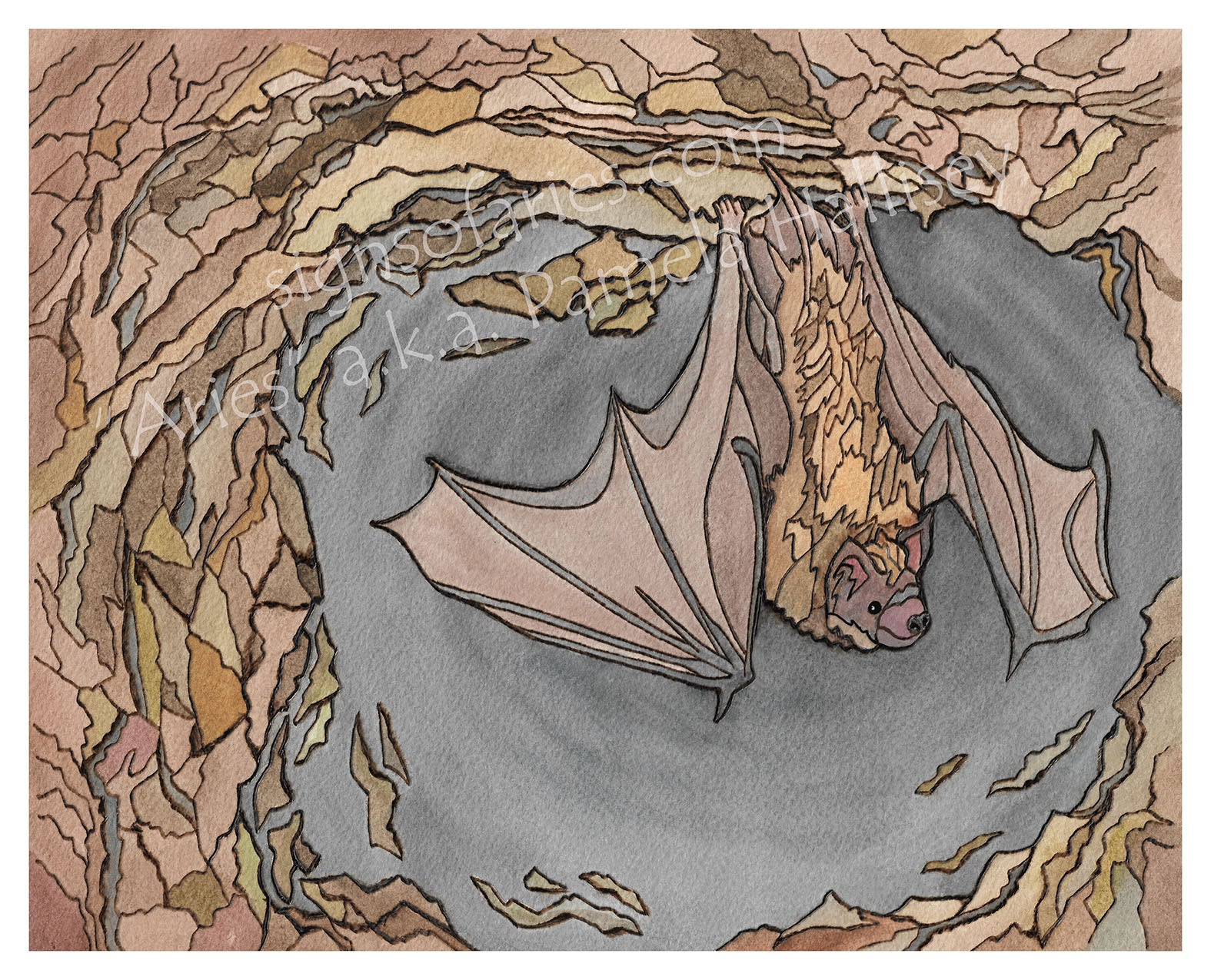 "Evening Stretch" Little Brown Bat ORIGINAL Art by Pamela Hallisey