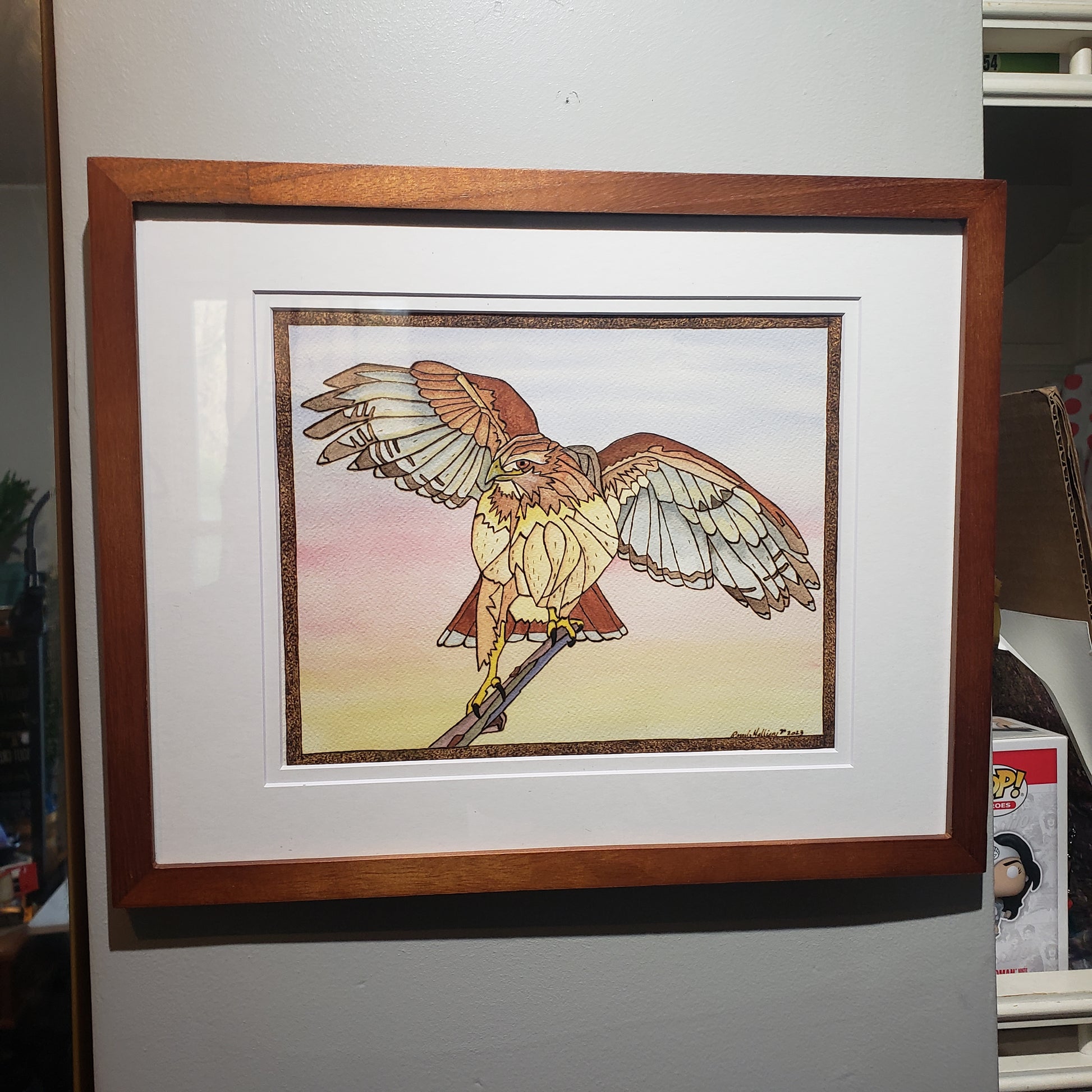 ORIGINAL "Morning Stretch" Red Tailed Hawk Art